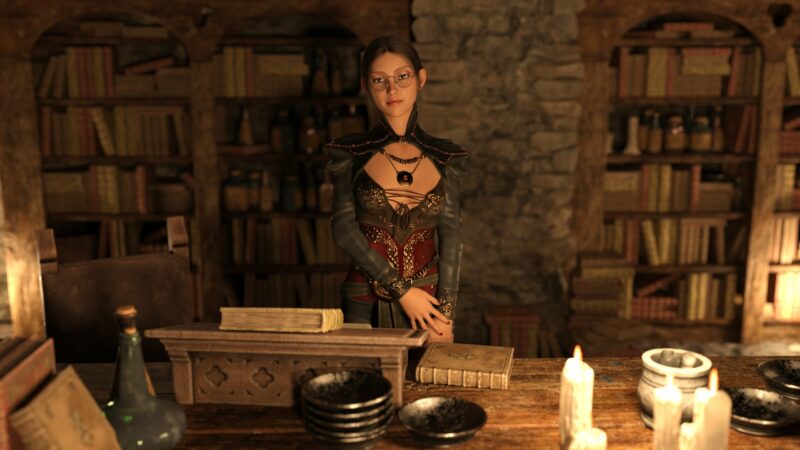 Parallel dazu habe ich angefangen, an Szenen zur Beziehungsentwicklung mit der jungen Alchemistin Evelyn zu arbeiten. Das werden kurze, aber bedeutungsvolle Episoden sein, in denen du diesem sanften Mädchen, das sich zur Unterwerfung hingezogen fühlt, allmählich näher kommst. Jede Begegnung wird eure Beziehung um eine neue Ebene erweitern, wobei der Höhepunkt natürlich eine explizite Szene sein wird. Wir haben bereits das erste Bildmaterial vorbereitet, und die Arbeit geht weiter.